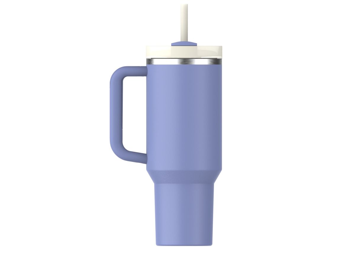 100% originálny Stanley Quencher má úzku základňu, ktorá sa bez problémov zmestí do väčšiny držiakov nápojov v aute, a je vybavený ergonomickou rukoväťou pre pohodlné prenášanie.