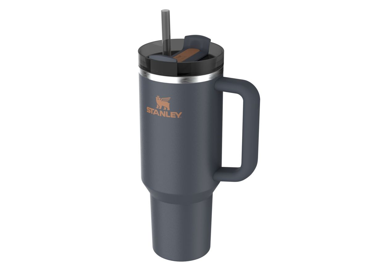 100% originálny Stanley Quencher má úzku základňu, ktorá sa bez problémov zmestí do väčšiny držiakov nápojov v aute, a je vybavený ergonomickou rukoväťou pre pohodlné prenášanie.