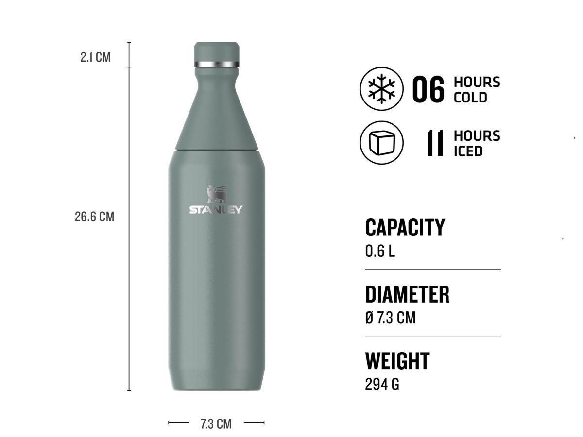 Jedinečná slim fľaša STANLEY All Day v elegantnom odtieni Shale má objem 600 ml.