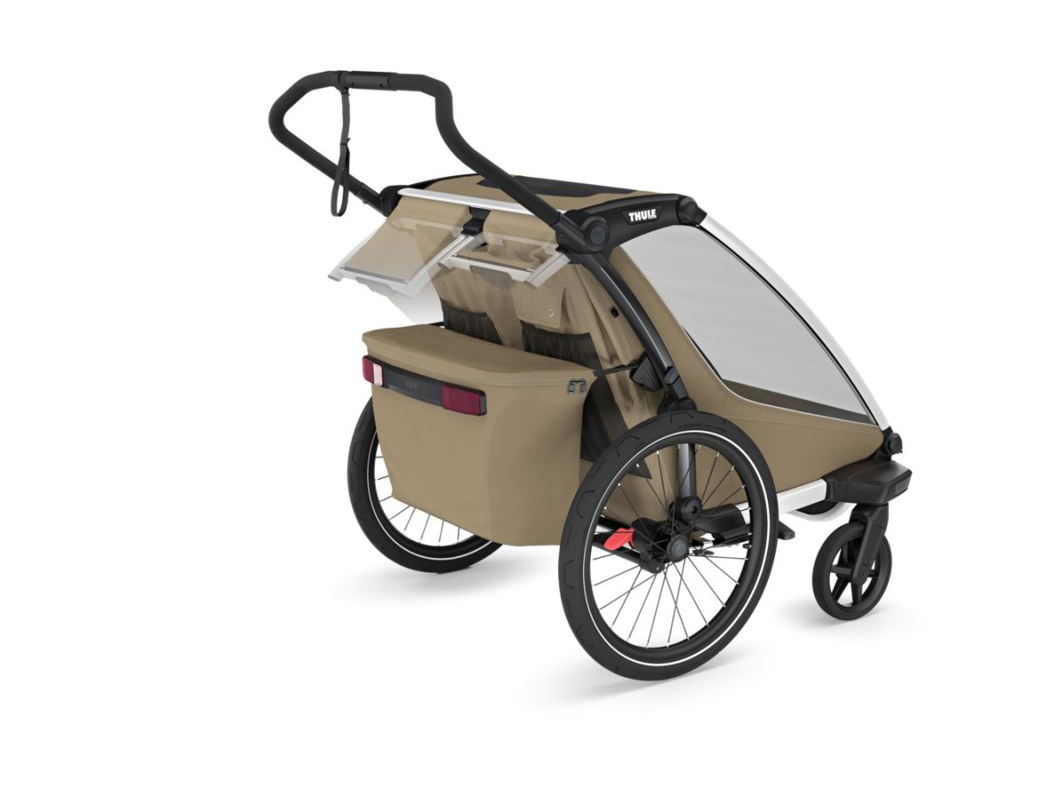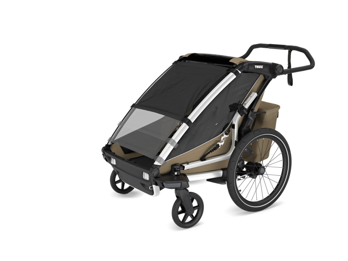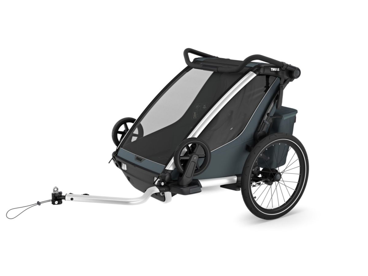 Praktický športový set vozíka Thule Chariot Cross 2 Double, vďaka nemu môžete vozík používať pri jazde na bicykli, behu alebo ako kočík na prechádzky.
