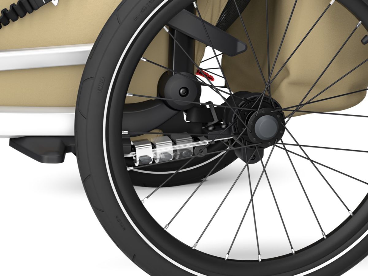 - Nastaviteľné odpruženie, ktoré vám umožní prispôsobiť pohodlie jazdy podľa toho, ako vaše dieťa rastie alebo ak vo vozíku prepravujete ťažšie predmety