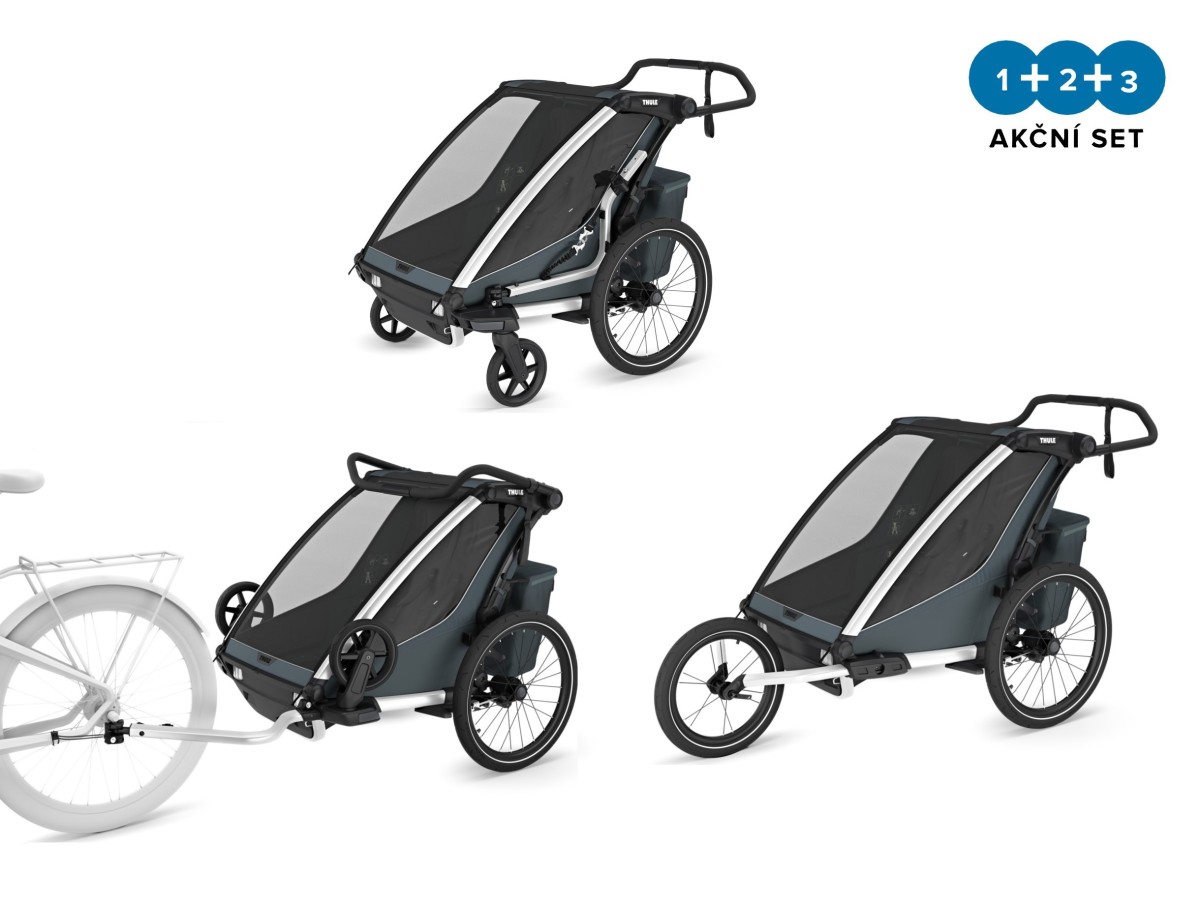 Thule Chariot Cross 2 G3 DOUBLE Dark Slate + bike set + kočíkový set + bežecký set