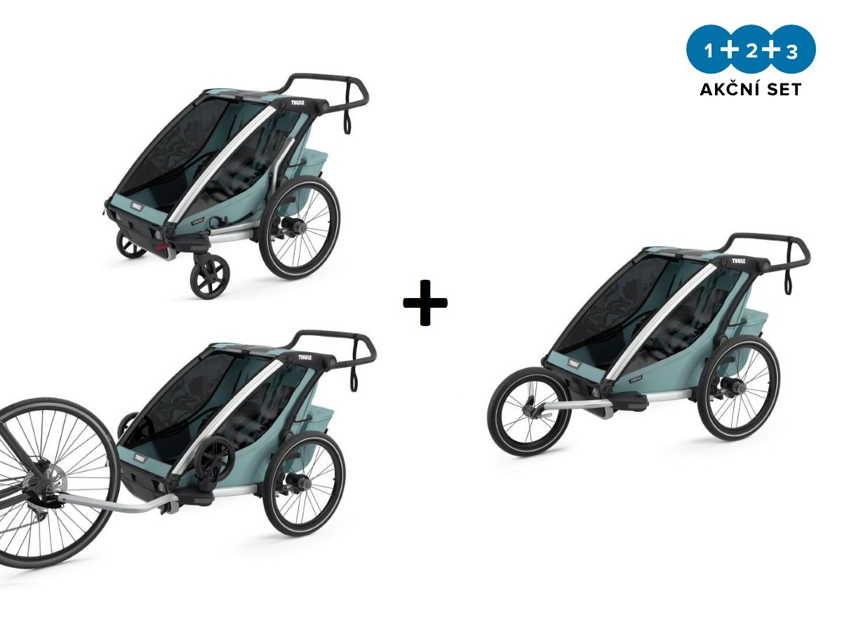 Radi by ste športovali s Vaším dieťaťom? Práve pre Vás je určený tento výhodný set Thule Chariot. Jeho súčasťou je bike set na pripevnenie vozíka k jazdnému bicyklu na jazdu v rôznych terénoch, kočíkový set, vhodný na prechádzky po meste a bežecký set, s ktorým sa spoločne s Vašou ratoletosťou môžete venovať kondičnému behu.