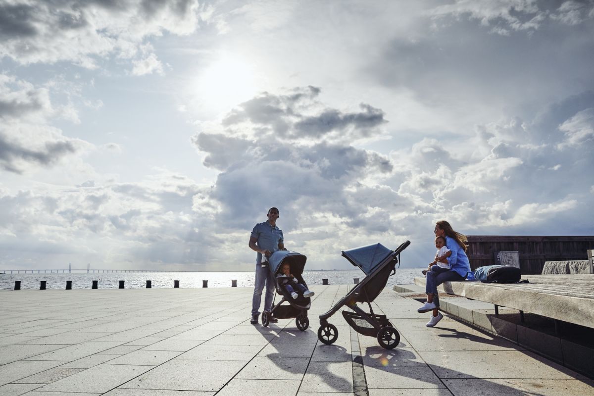 - Nastaviteľná strieška s integrovaným predĺžením, ktoré chráni pred nízkym slnkom a UV žiarením (ochranný faktor 50+)