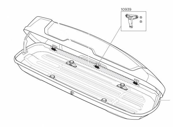 Uzamykateľný hák Thule 10939 pre rad strešných boxov Thule Force XT.