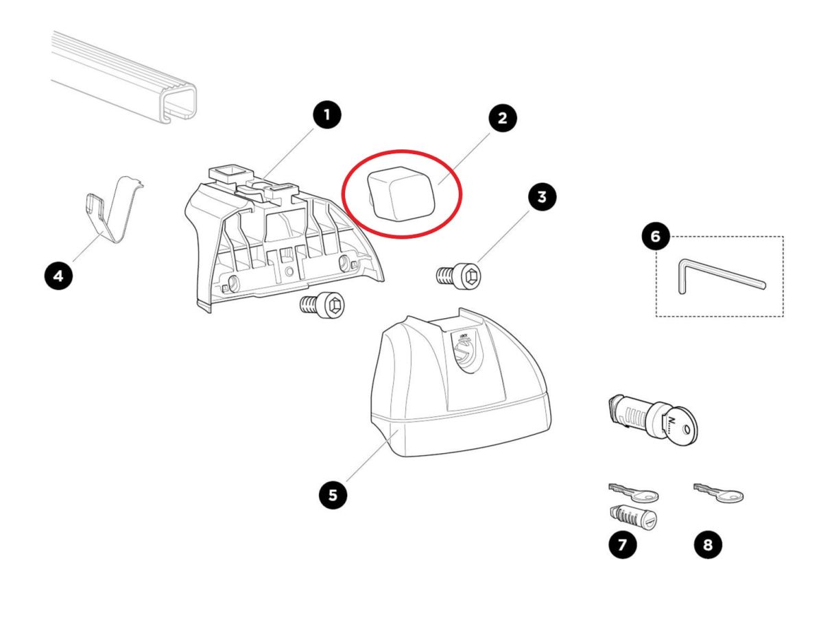 Koncovka kovových štvorhranných tyčí Thule s profilom 20x30mm.