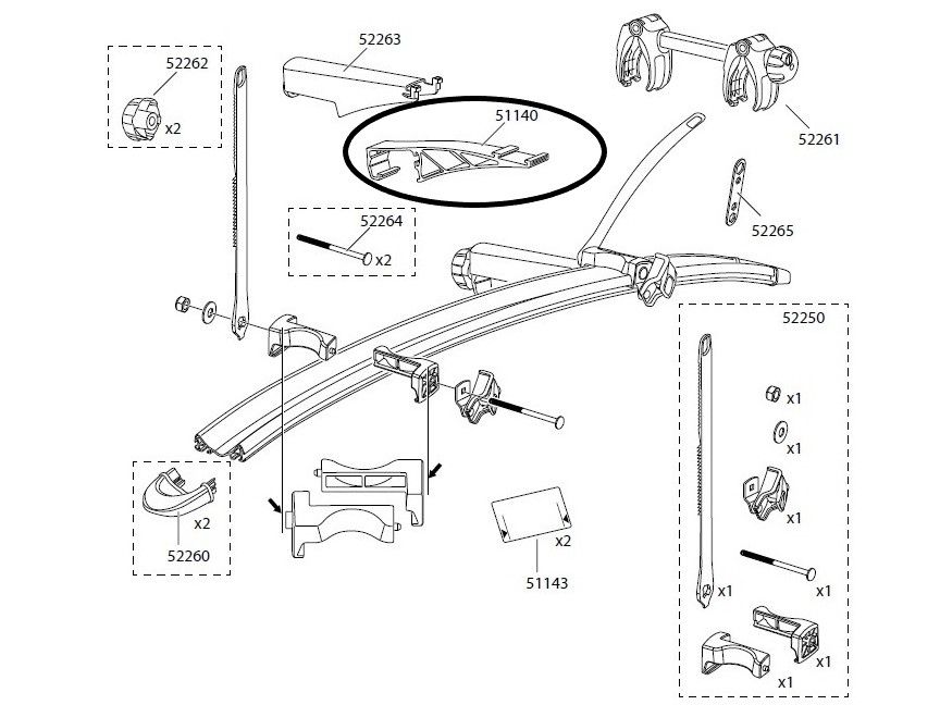 Balenie obsahuje 2 ks náhradného úchytu Thule 51140 k adaptéru Thule 928-1.