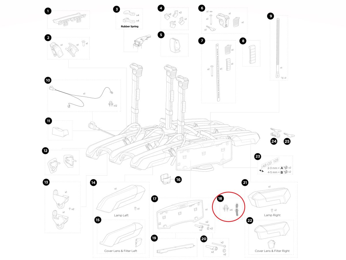 Držiak kábla Thule pre nosiče kolies naťažné zariadenie Thule VeloCompact 924, Thule VeloCompact 926, Thule EasyFold XT 933, Thule EasyFold XT 934, Thule VeloSpace XT 938, Thule VeloSpace XT 939, Thule Euro2, Thule Onto 9059 a Thule Epos.