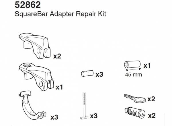 Náhradný kit pre nosič bicyklov na strechu Thule FreeRide 532 obsahuje: 2 x 50551, 1 x 34357, 3 x 50208, 3 x 50554, 3 x 50552, 1 x 34159, 2 x zámok s kľúčom.