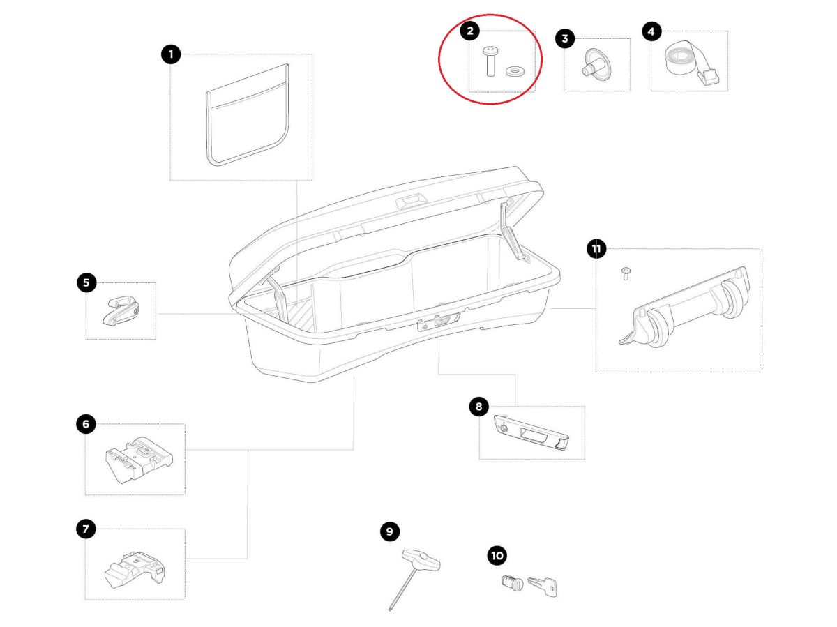 Náhradná skrutka + podložka 1500055572 pre boxy Thule Santu.