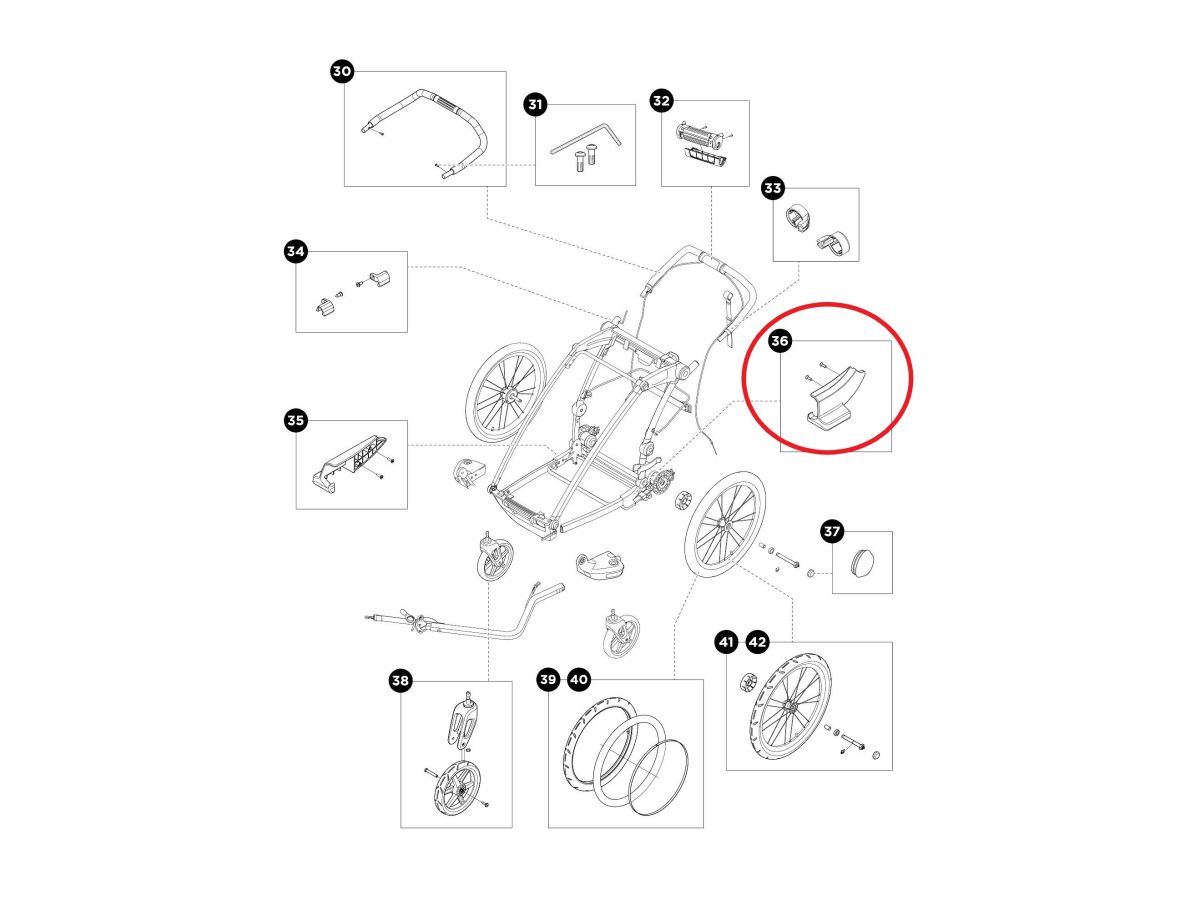 Thule Suspension Cover 1540105325, náhradná pravá krytka zavesenia pre športové vozíky Thule Chariot Sport/ Cross/ Lite/ Cab.