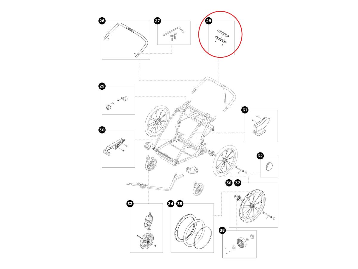 Náhradní Twist Handle Blank pro sportovní vozíky Thule Chariot Cross 1 a 2 /Lite 1 a 2 /Cab 1 a 2 (2017-X).