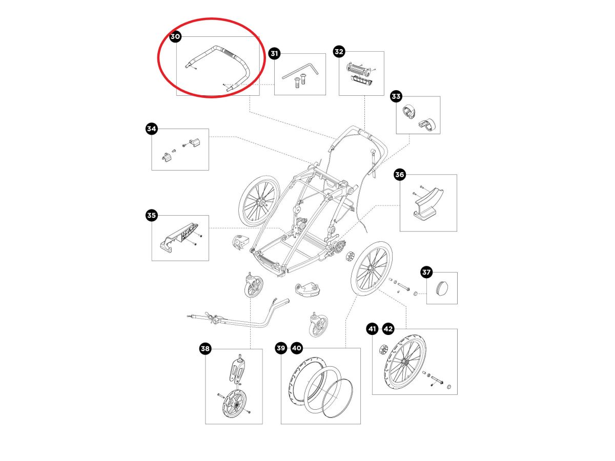 Náhradné riadidlá 105368 pre vozíky Thule. Sú určené pre športové vozíky Thule Chariot Sport 1 / Cross 1 / Lite 1 / Cab 1.
