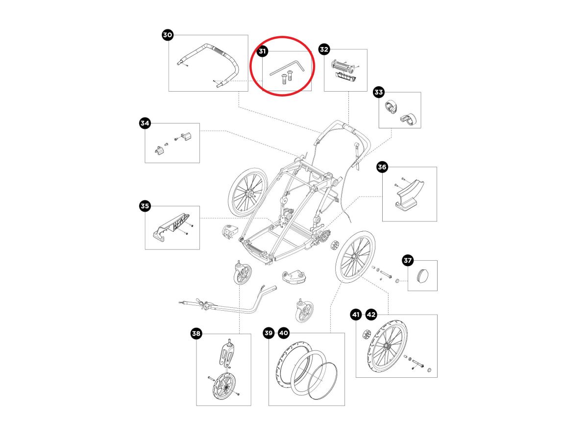 Thule Handlebar Hardware 1540107000, náhradné upevňovacie náradie k riadidlám vozíka.