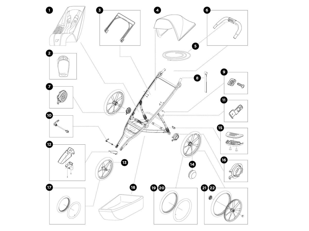 Náhradná pneumatika zadného pravého kolesa 1540107019 pre kočiar Thule Glide 2 Jet black.