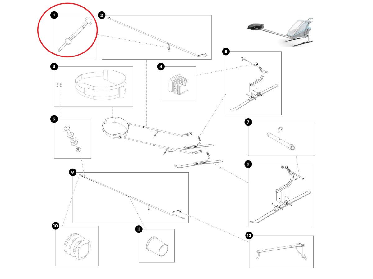 Thule Strap Securing Pin w-Ring 202025, náhradný zaisťovací kolík k lyžiarskemu setu Thule Chariot Cross-Country Skiing Kit.