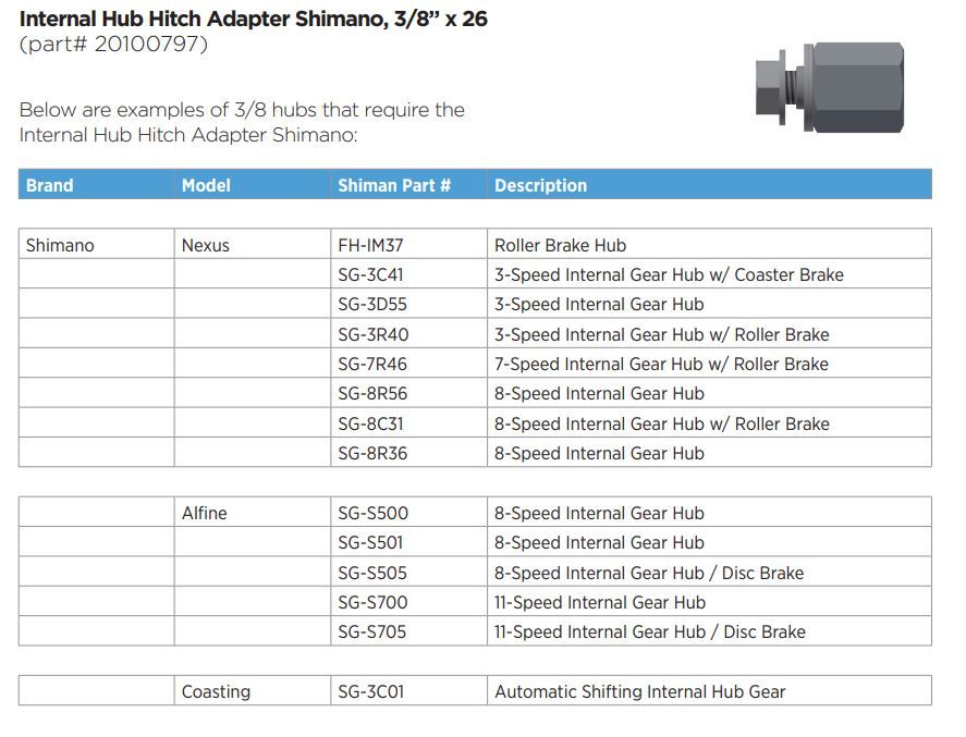 Umožňuje pripevniť cyklistický set ku kolesám s nábojom so zabudovanou prevodovkou Shimano .