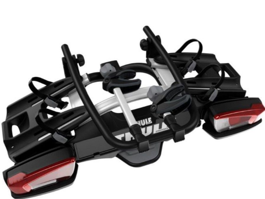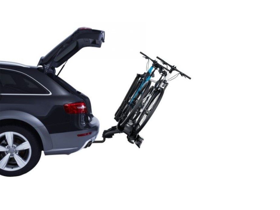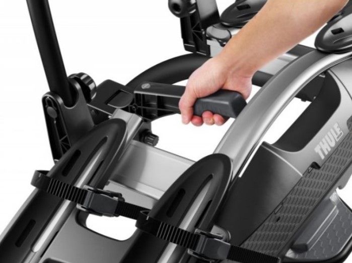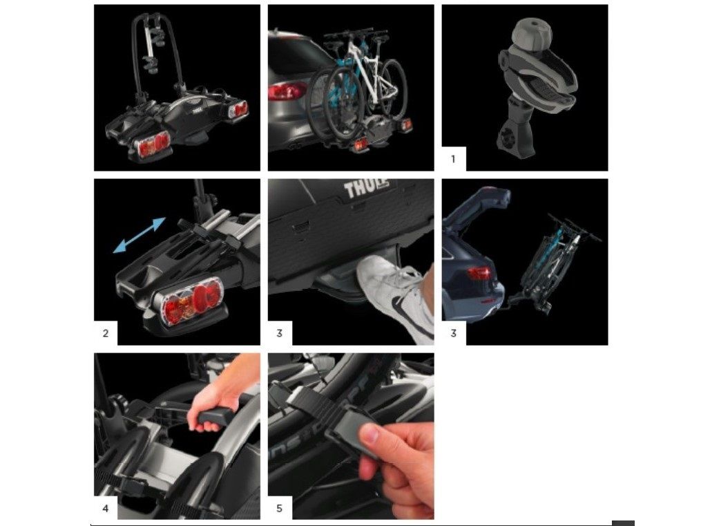 Thule VeloCompact 924 je moderným nástupcom predchádzajúcej generácie EuroWay 920. VeloCompact je veľmi jednoduchý, praktický a má ľahkú hliníkovú konštrukciu. Oproti predchodcovi má 924 vyššiu nosnosť. Nosič sa prichytí k ťažnému zariadeniu stlačením ergonomickej páky, takže montáž prebieha veľmi rýchlo. Vďaka pohodlnému nožnému pedálu, je možné nosič Thule VeloCompact ľahko sklopiť aj s naloženými kolesami (neobmedzený prístup do batožinového priestoru). VeloCompact 924 má vysúvateľné držiaky ráfikov (pneu), takže umožňuje previesť aj kolesá s väčším rázvorom. Nosič je možné zamknúť k ťažnému zariadeniu a súčasne je možné uzamknúť každé koleso k nosiču zvlášt. Thule 924 je vybavené 13-pólovou elektro prípojkou. Pokiaľ je Vaše vozidlo vybavené 7-mi pólovou zástrčkou je nutné dokúpiť adaptér Westfalia 7-13 alebo Thule 9906 v súvisiacom tovare nižšie. Pre ľahké nakladanie kolies na nosič je možné dokúpiť nakladaciu rampu Thule 9152.