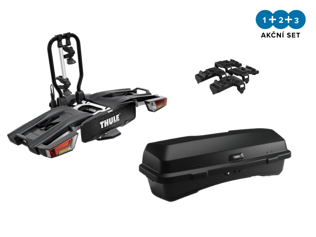 Výhodný set nosiča kolies Thule EasyFold XT 933 a boxu Thule Santu, vrátane adaptérov na inštaláciu.
