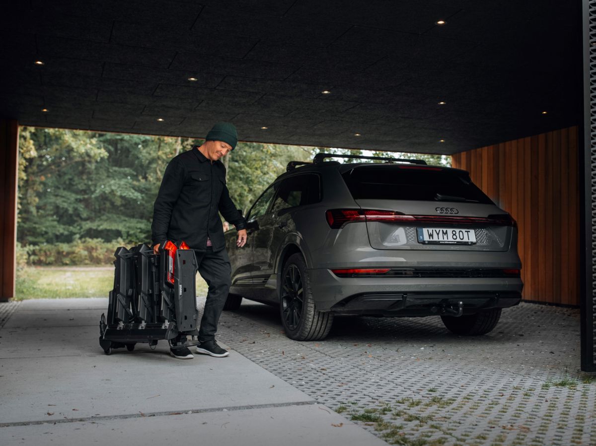 Samozrejmosťou je nosič bicyklov na ťažnom zariadení sklopiť, aby ste mali ľahký prístup do kufra a to aj s naloženými kolesami.