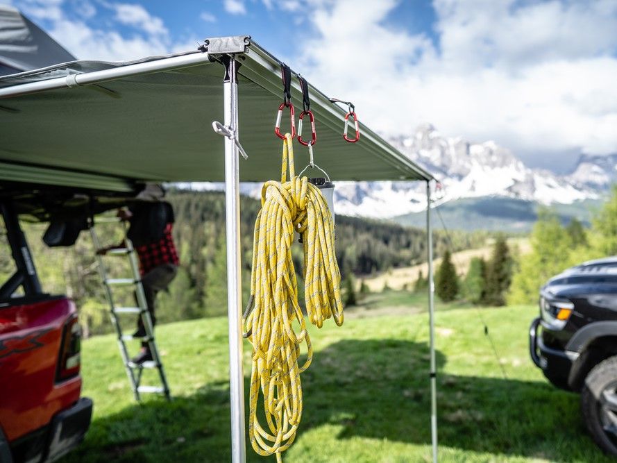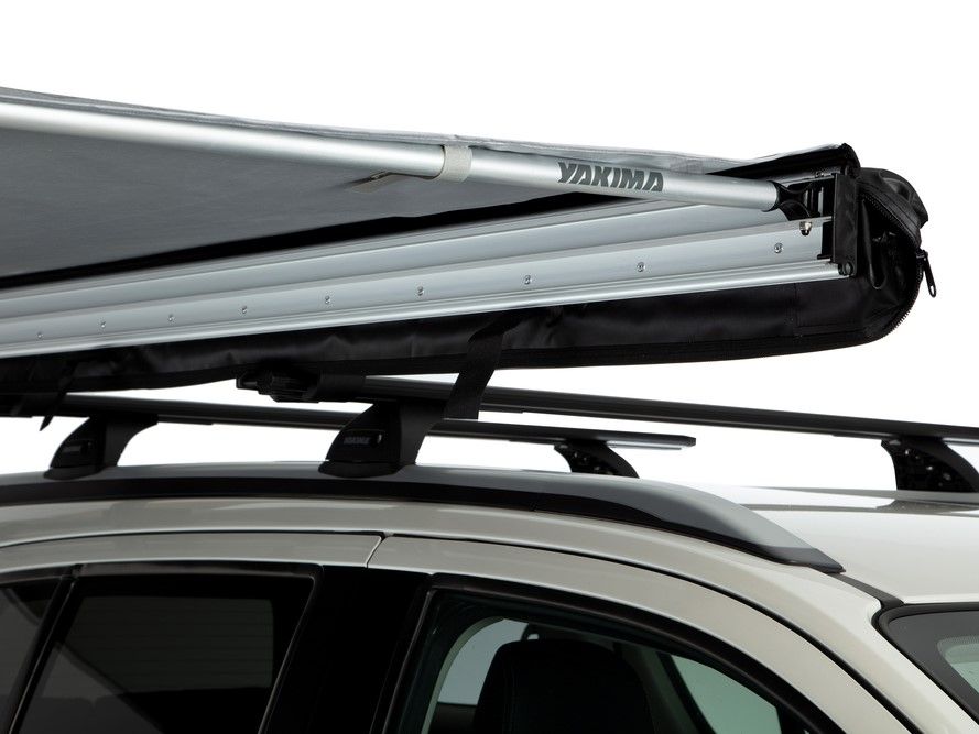 Yakima SlimShady 6.5, nízkoprofilová markíza, ktorá sa ľahko a rýchlo upevňuje na strešné nosiče. Na upevnenie nie je potrebné žiadne špeciálne náradie. Minimálne rozpätie priečnikov na upevnenie markízy je 24''.