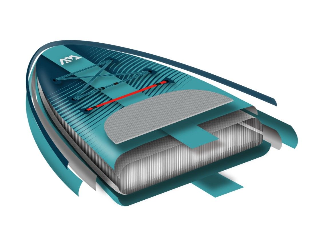 Zásadným technickým vylepšením je použitie technológie DOUBLE STRINGER TECHNOLOGY, ktorá zahŕňa dvojité pozdĺžne vystuženie PVC pásmi na zvýšenie tuhosti paddleboardu. Táto konštrukcia prispieva k väčšej pevnosti plaváka, lepšej responzivite pri pádlovaní a zároveň poskytuje vyššiu ochranu hrán vďaka spevnenému okraju.