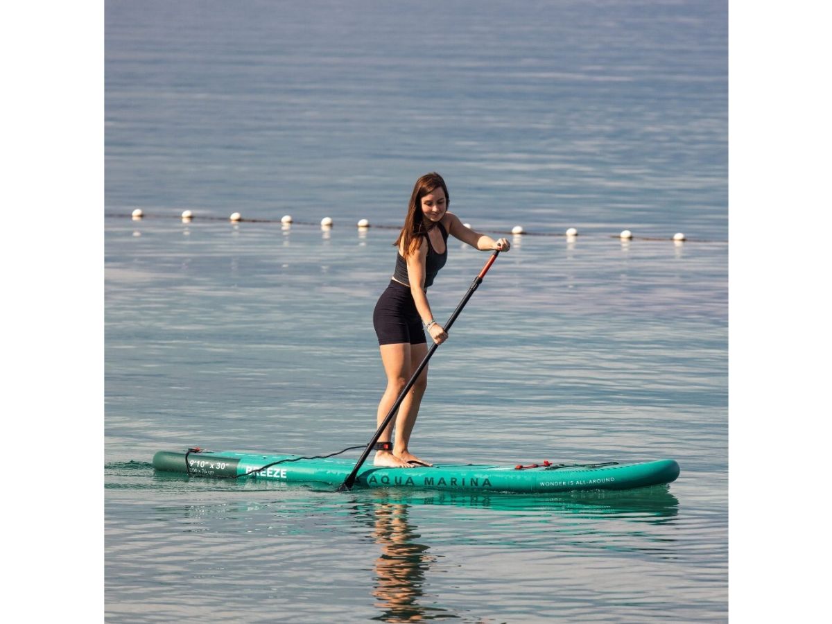 AQUA MARINA Breeze je perfektnou voľbou pre každého, kto hľadá ľahký, stabilný a ľahko ovládateľný paddleboard s atraktívnym dizajnom a praktickými funkciami.
