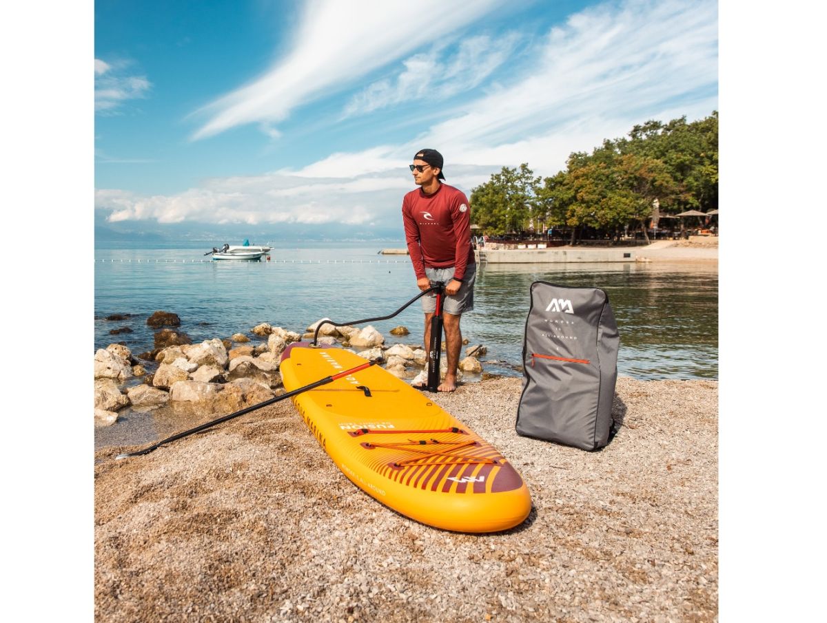 Súčasťou balenia je aj 3-dielne hliníkové pádlo, ručná pumpa s hliníkovým piestom, eco-friendly CIRCUPACK™ transportný batoh, plutvička Slide-in a poistný remeň.