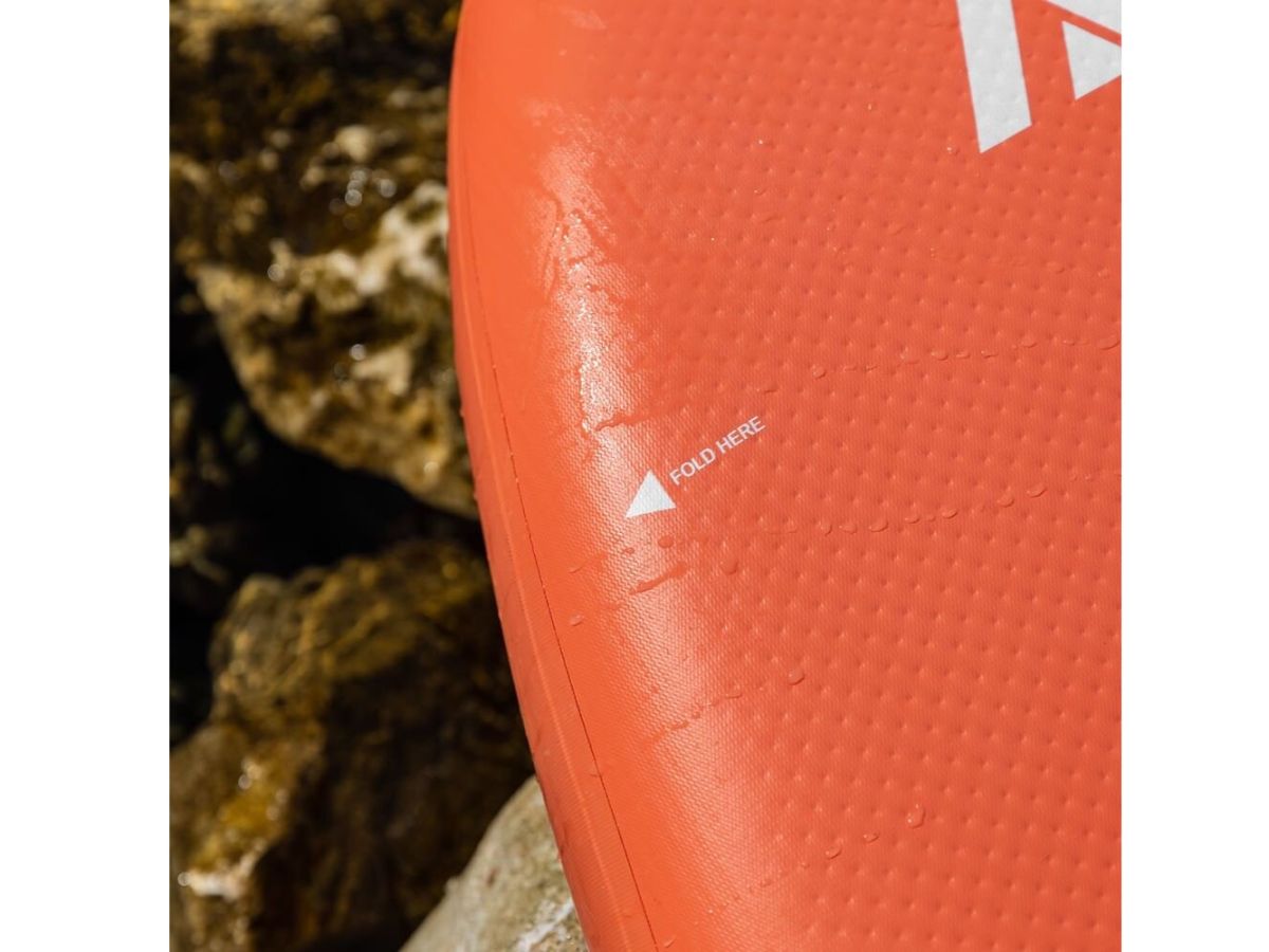 Přepracovaný design přináší nejen moderní estetiku, ale i funkční vylepšení. Paddleboard je vybaven protiskluzovým nášlapem s unikátním vzorem písečné pláže, pohodlným středovým madlem a D-ringy pro uchycení kajakové sedačky. Praktický RED STRAP™ systém na přídi umožňuje bezpečné uchycení nákladu.