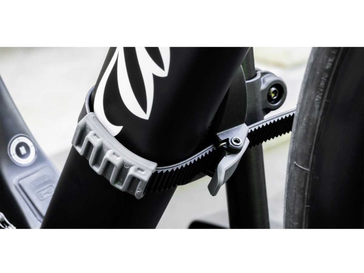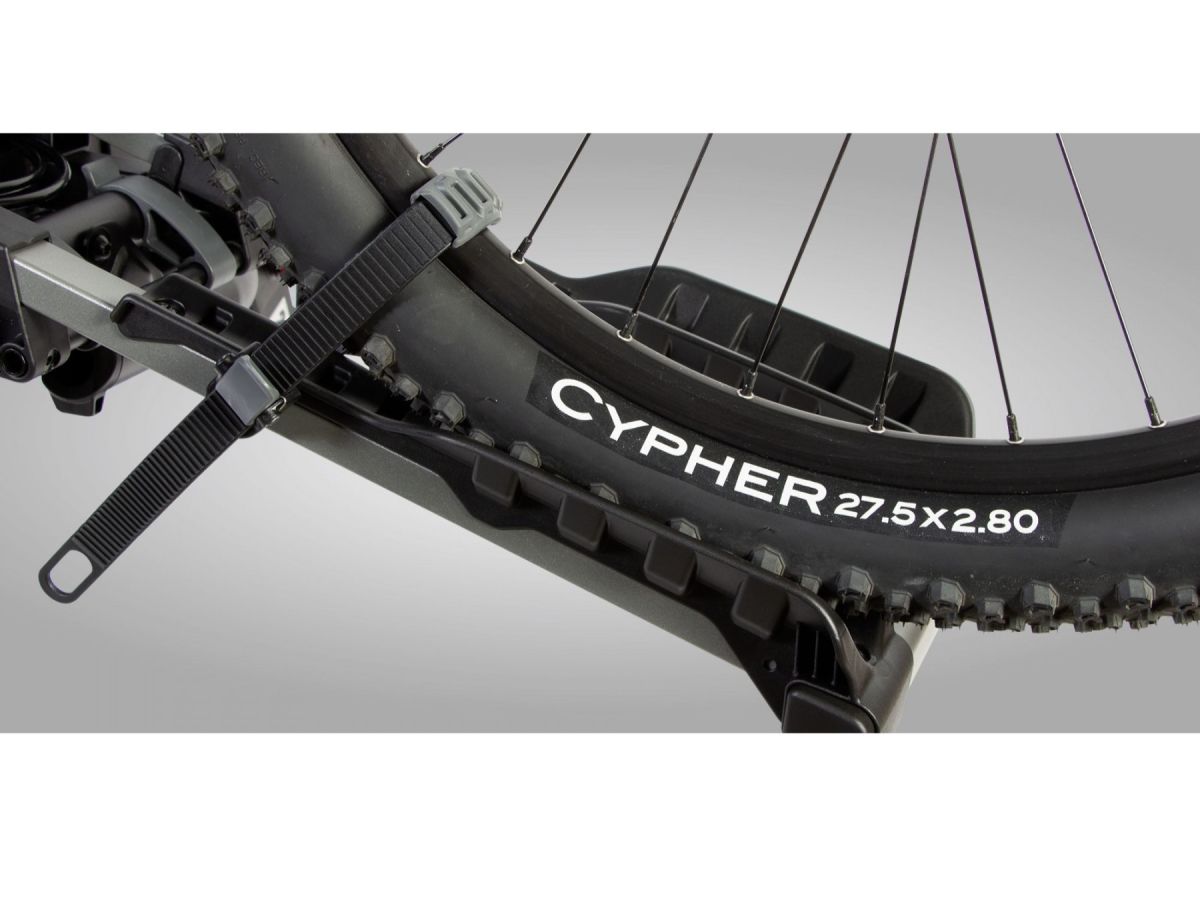 Držiaky kolies pojmú väčšinu rázvorov (nie tandem), dokonca aj malé detské bicykle. Pogumované pásky bezpečne zaistia pneumatiky so šírkou až 3,25". Bez problémov upnete aj karbónový rám, vďaka nastaviteľným pogumovaným držiakom, ktoré držia koleso pevne, ale jemne.