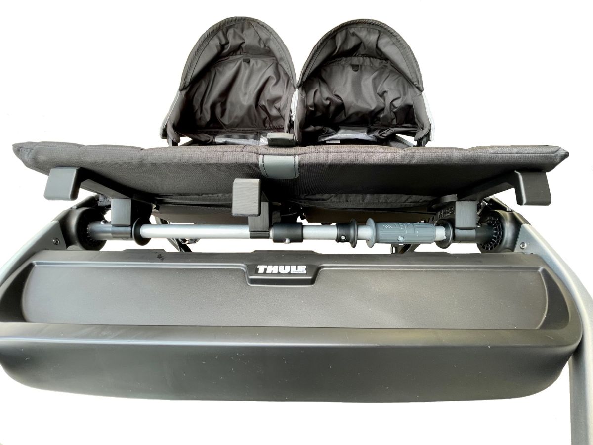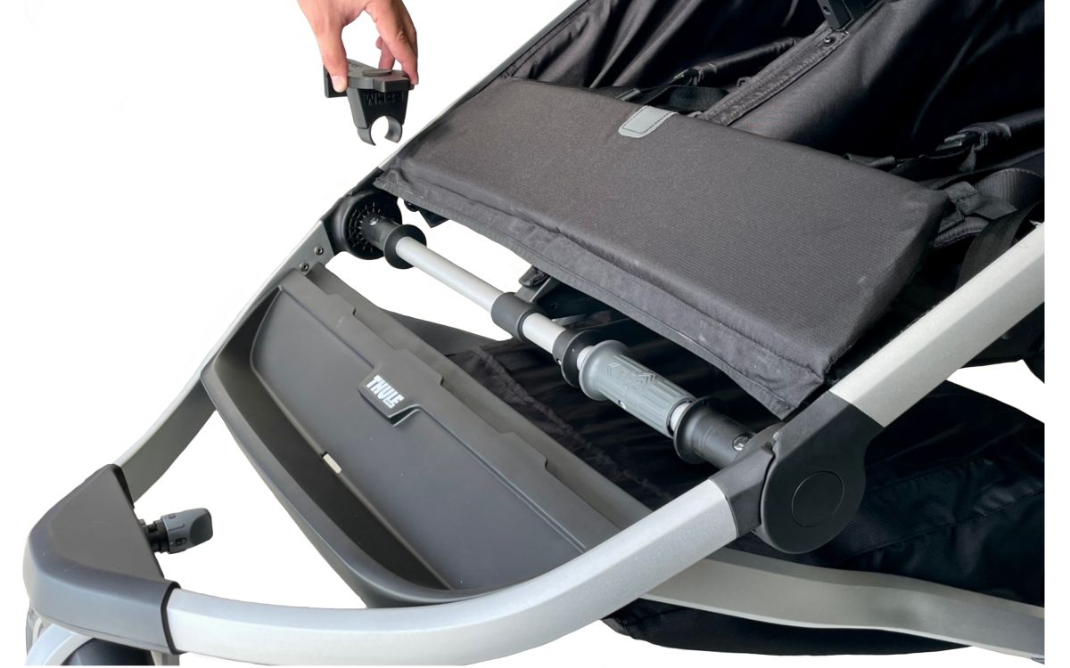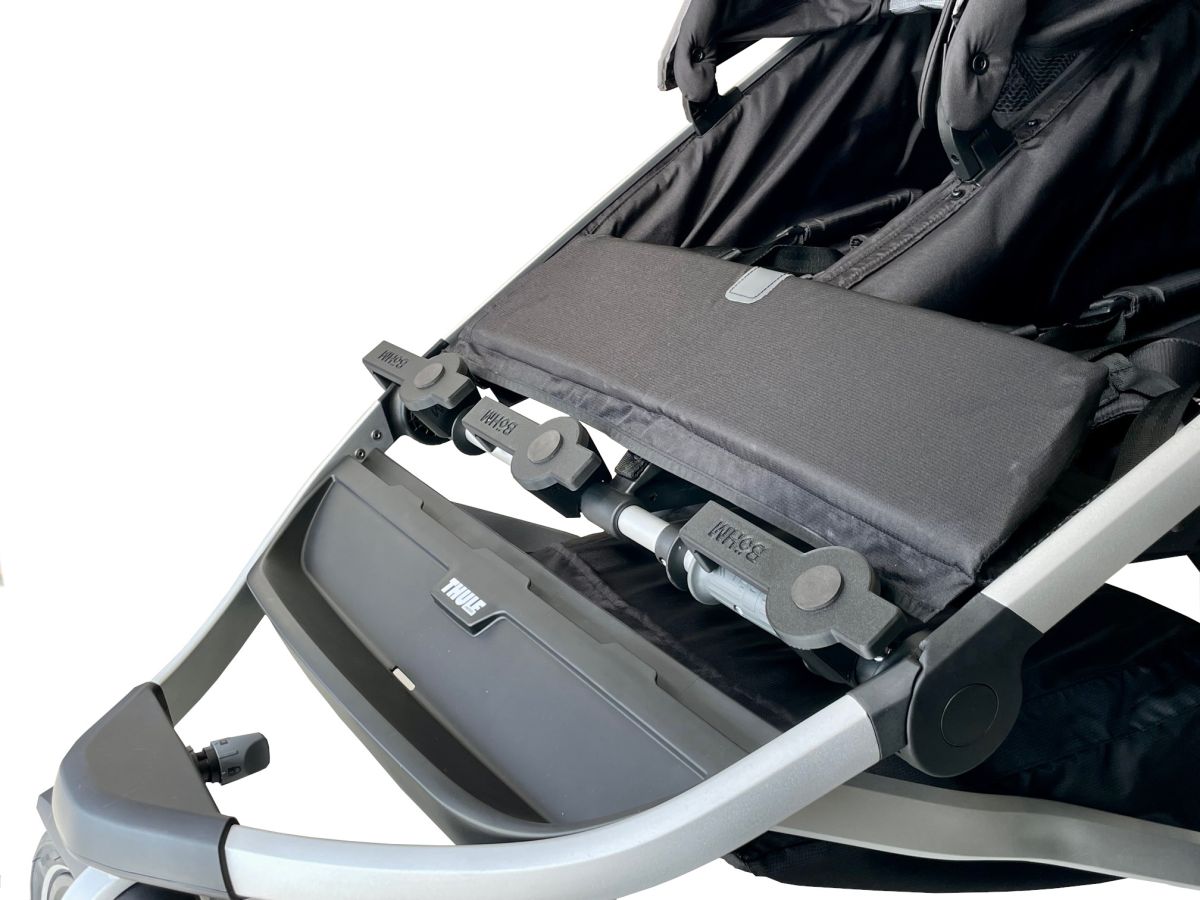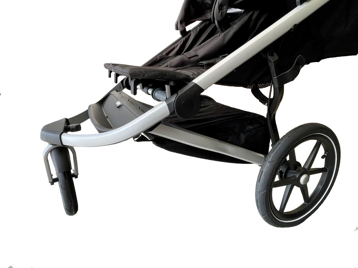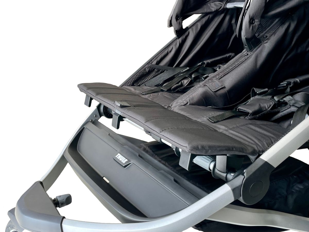 Polohovanie nožičiek BöHM určené pre kočík Thule Urban Glide 2 DOUBLE ponúka hneď 2 FUNKCIE ZÁROVEŇ a NIE JE TREBA HO DEMONTOVAŤ pri skladaní kočíka do kufra vozidla.