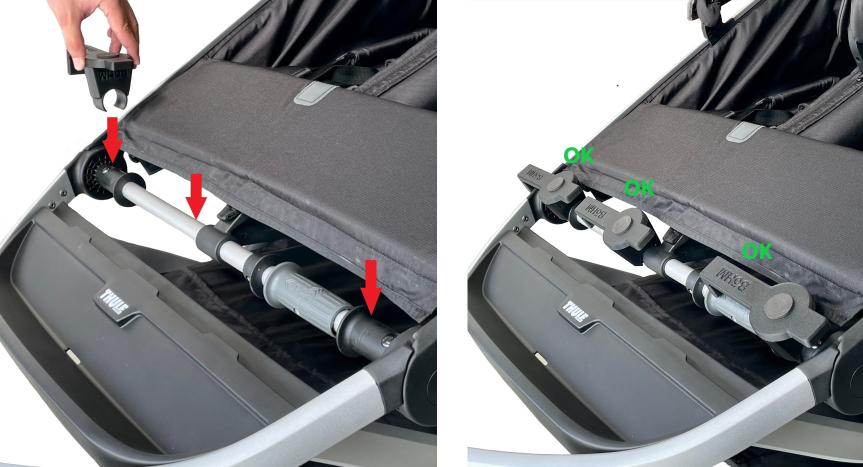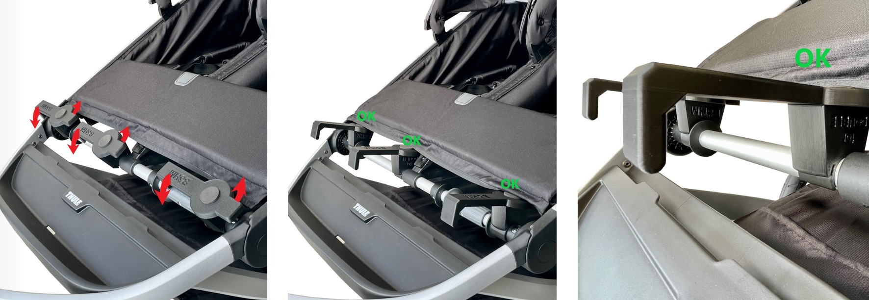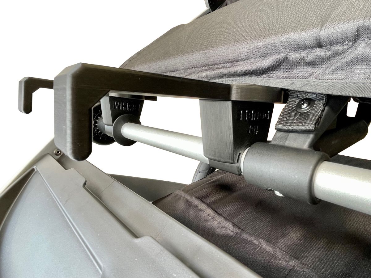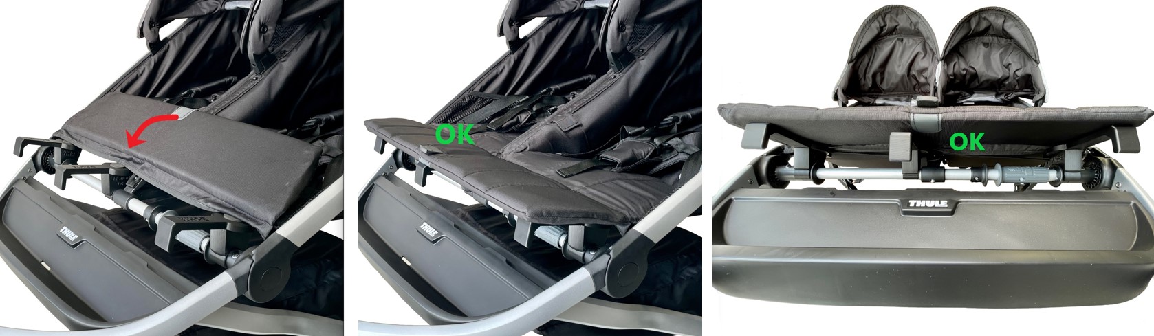 Polohovanie nožičiek BöHM určené pre kočík Thule Urban Glide 2 DOUBLE ponúka hneď 2 FUNKCIE ZÁROVEŇ a NIE JE TREBA HO DEMONTOVAŤ pri skladaní kočíka do kufra vozidla.