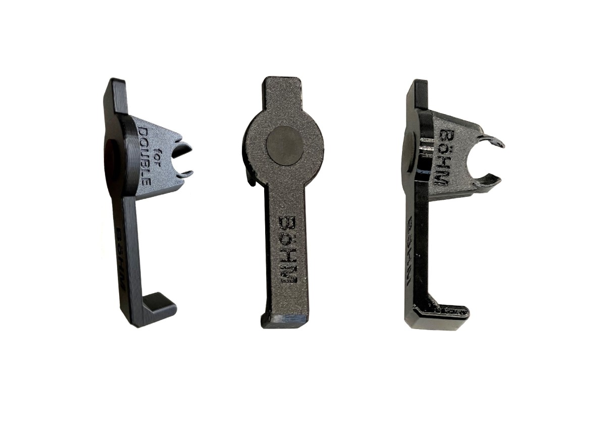 2. Nacvaknete polohovanie nožičiek BöHM na nosné rameno. Prostredná nožička má menší priemer zácvaku a je označená nápisom „for DOUBLE“.