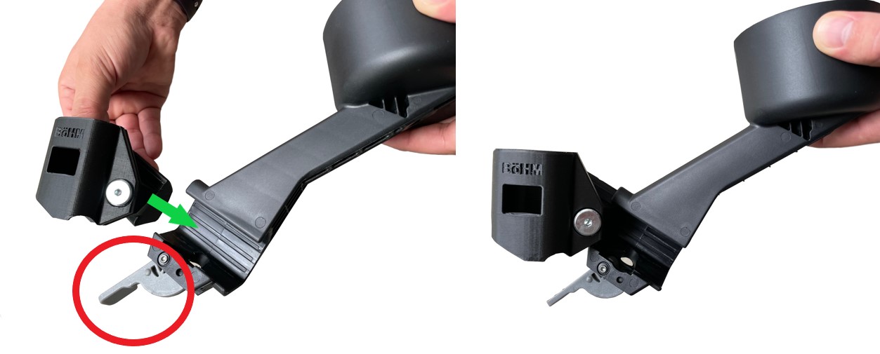 1. Vezmite podporu stolčeka (nechajte ju v odaretovanej polohe) a nasaďte na ňu adaptér BöHM.