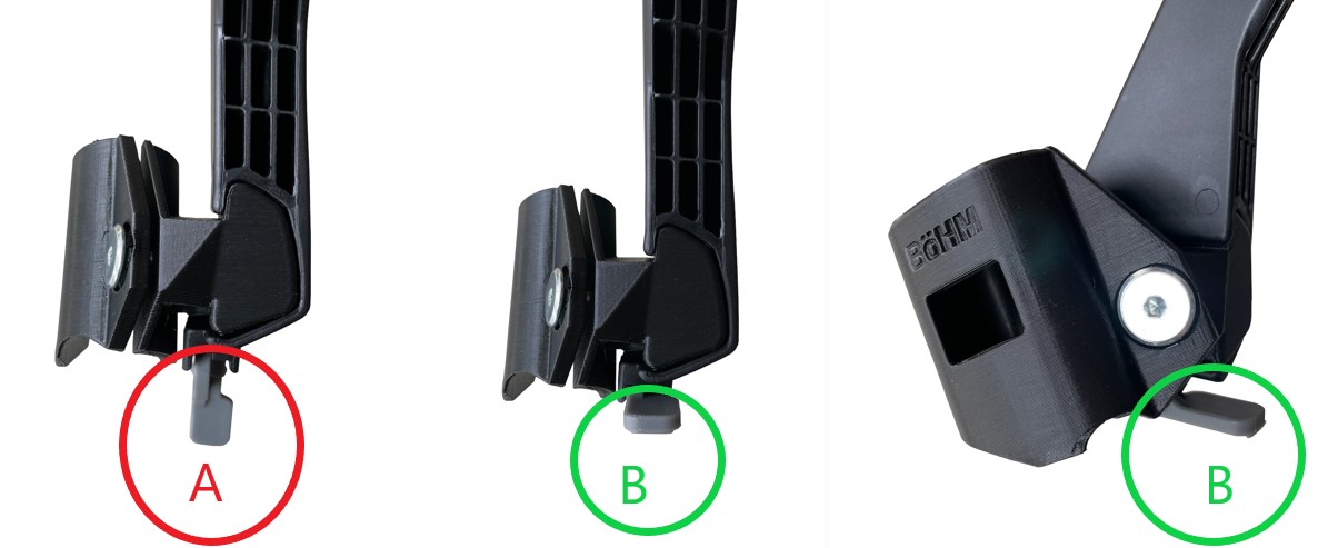 2. Podložku zaaretujte - prepnite páčku z polohy A do polohy B.