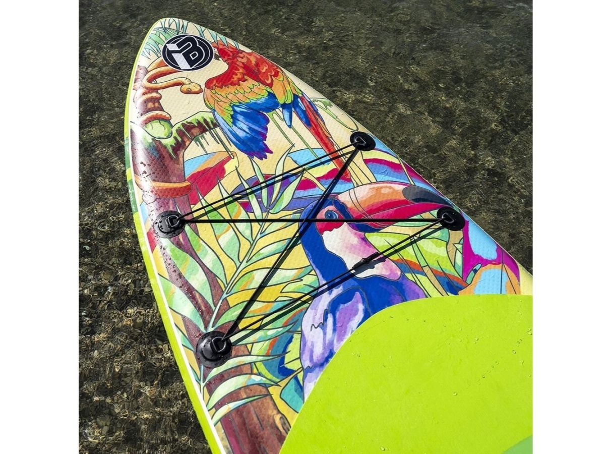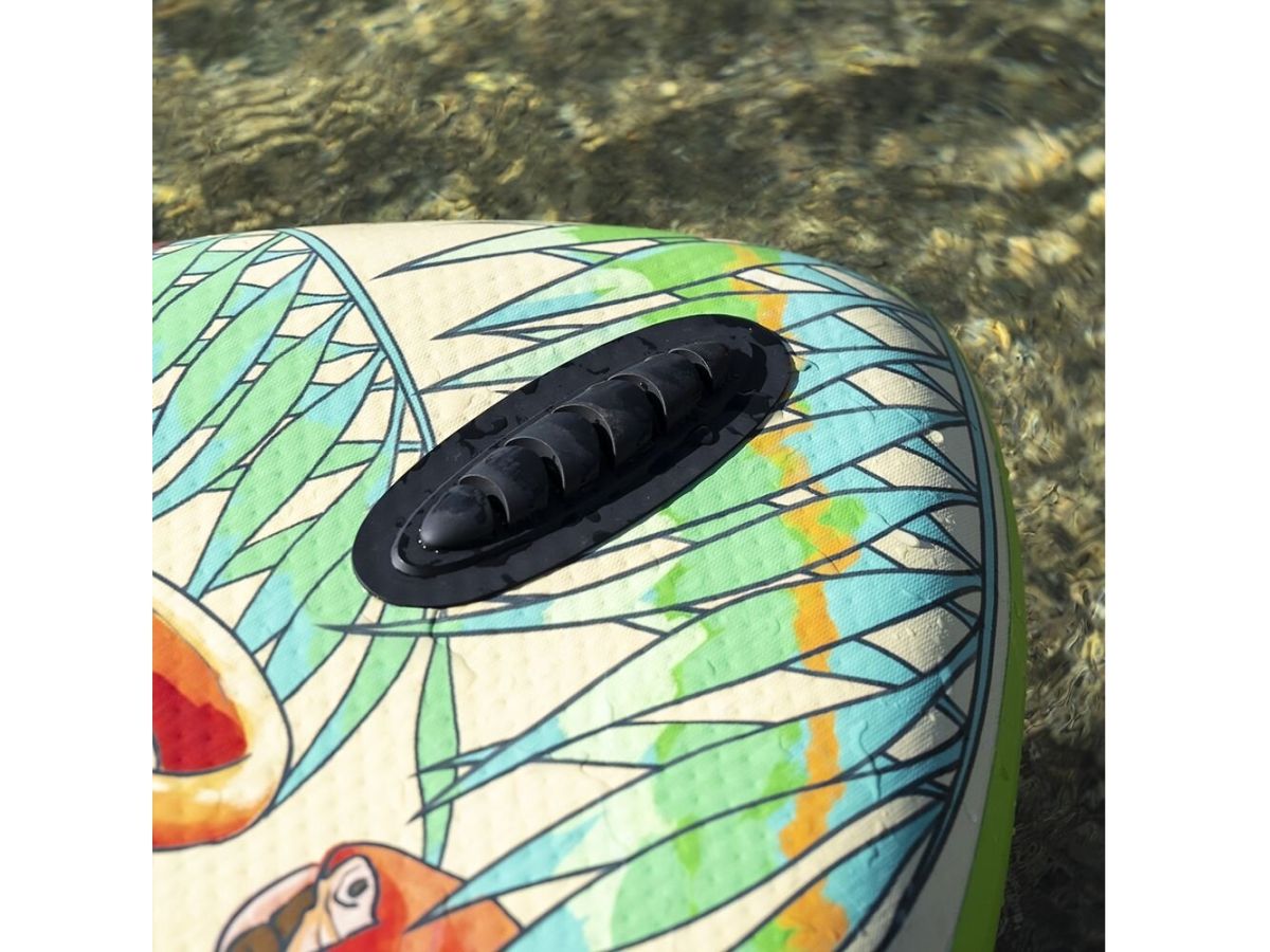 Povrch paddleboardu je opatrený protišmykovým EVA deck padom, ktorý poskytuje maximálne pohodlie a istotu pri jazde. Vďaka nosnosti až 155 kg si môžete vziať na palubu aj dieťa alebo štvornohého maznáčika. Polstrované madlo uľahčuje prenášanie a zároveň môže slúžiť ako držiak na pádlo. Pre ešte väčšiu flexibilitu je paddleboard vybavený D-ringami na uchytenie kajakovej sedačky a bungee popruhmi pre bezpečné uchytenie vybavenia.