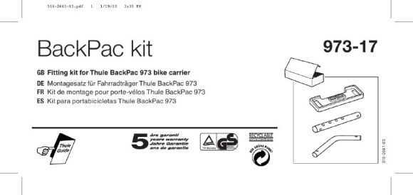 Montážny kit Thule 973-17 na montáž nosiča Thule BackPac 973 na zadnú časť automobilu.