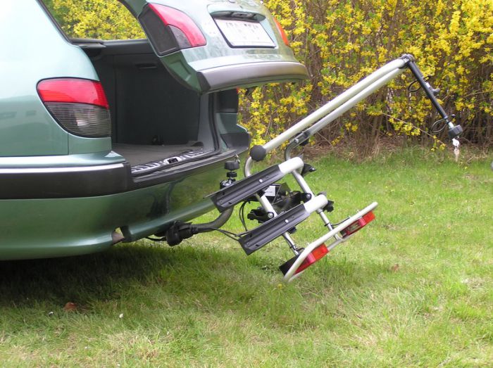 Sklopná funkcia nosiča (zatiahnutím za madlo v strede nosiča, medzi svetlami) umožňuje prístup do batožinového priestoru aj s naloženými kolesami.