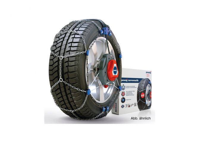 Pewag Servomatic používa technológiu automatického doťahovania pri otáčaní kolies. jedná sa o inovatívne riešenie s pevným kruhom pre automobily s minimálnym priestorom v podbehu. Snehové reťaze Pewag Servomatic sú geniálne jednoduché na ovládanie a súčasne sú bezpečným riešením pre tých, ktorí nie sú technicky zdatní. Reťaze majú kontrolné "okienko", ktoré upozorňuje na správne dopnutie reťaze.