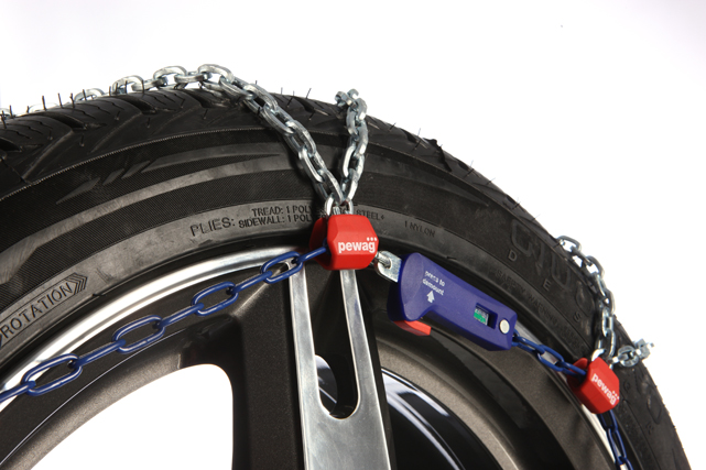 Slogan výrobca pre inteligentný systém s(nox)olution: Pewag Snox robí montáž tak jednoduchú, ako obliekanie kúpacej čiapky.