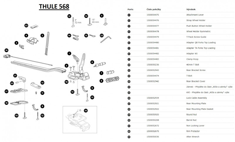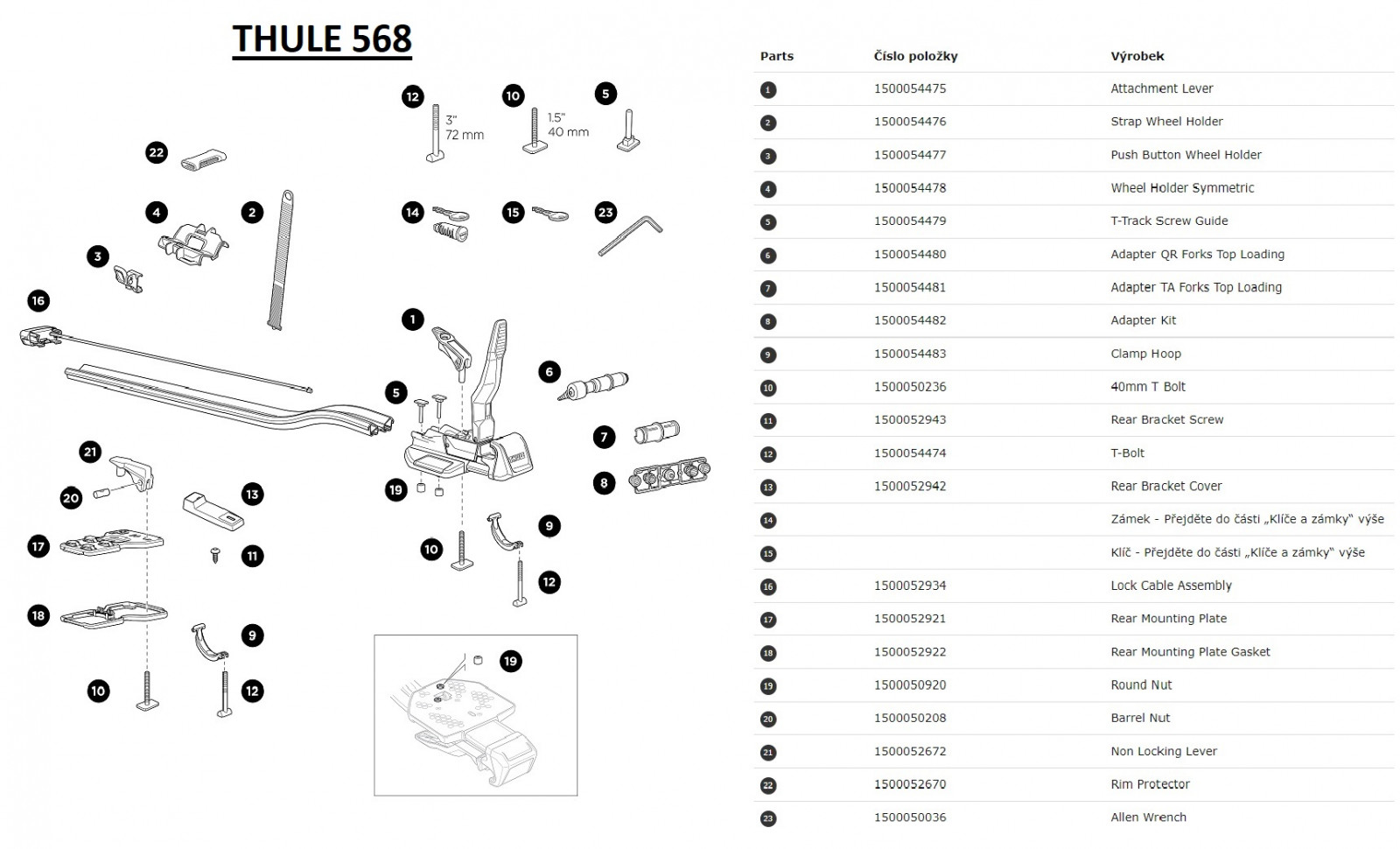 V tejto sekcii nájdete originálne náhradné diely THULE pre výrobok Nosič bicyklov Thule TopRide 568.