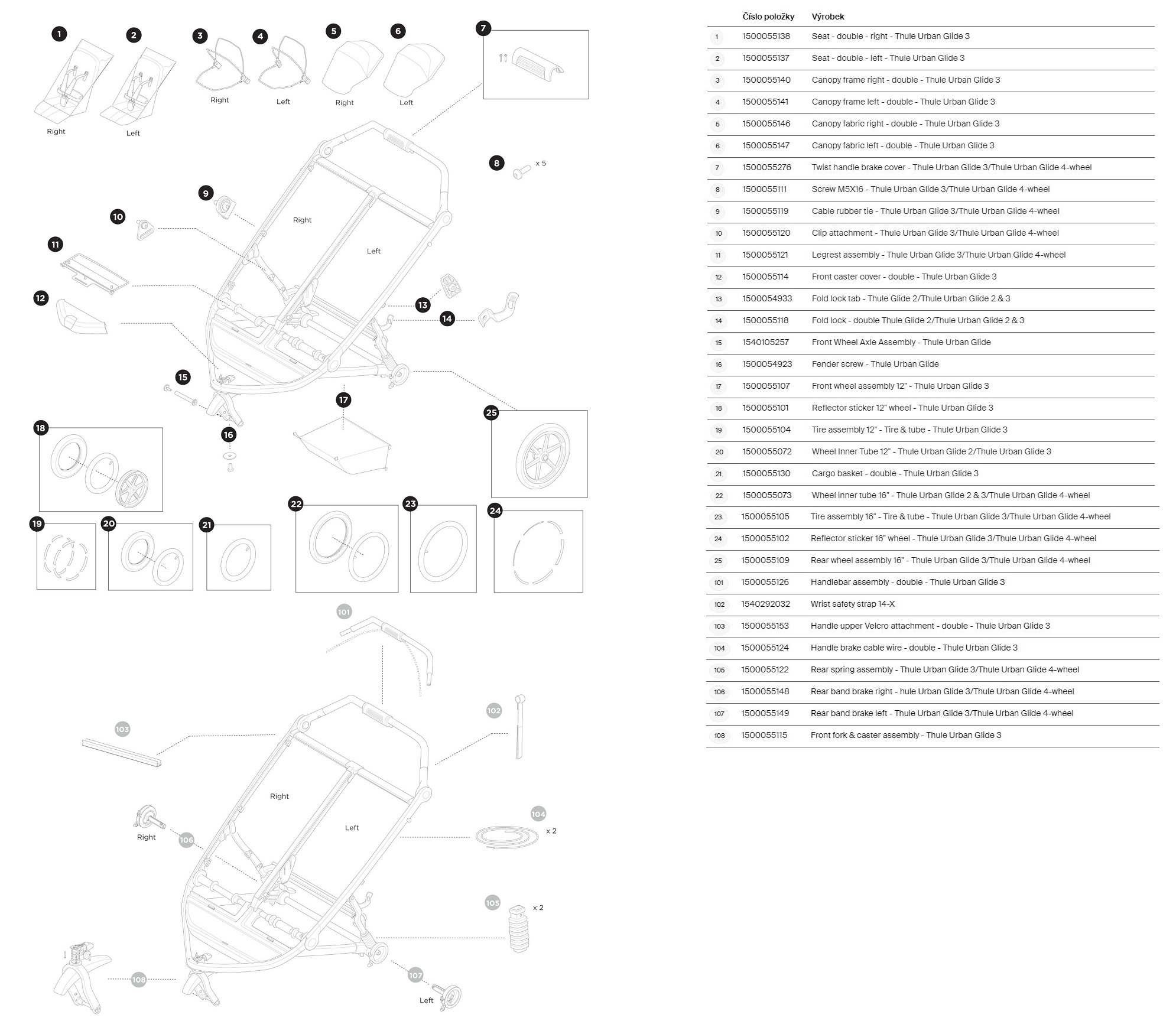 V tejto sekcii nájdete originálne náhradné diely THULE pre výrobok Thule Urban Glide 3 Double Black.