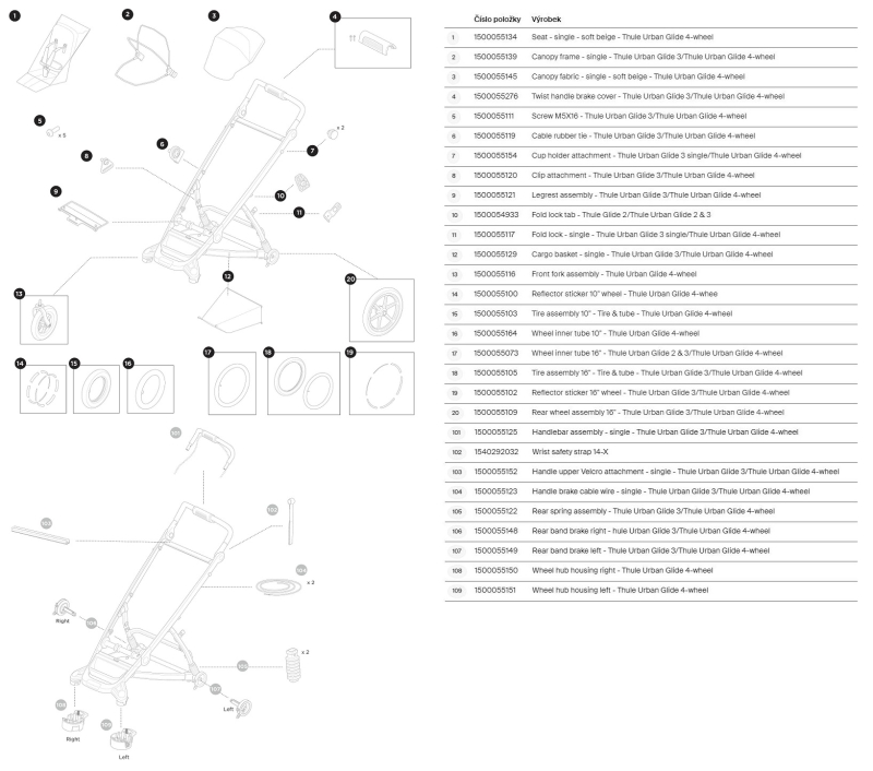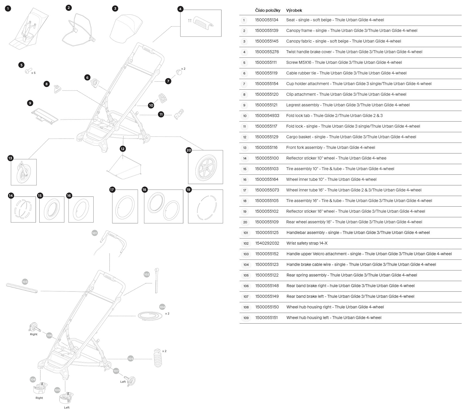 V tejto sekcii nájdete originálne náhradné diely THULE pre výrobok Thule Urban Glide 4-wheel Soft Beig.