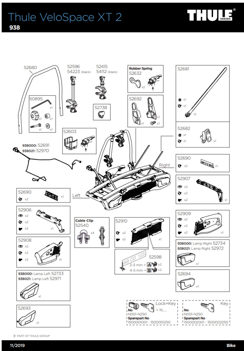 V tejto sekcii nájdete originálne náhradné diely THULE pre výrobok Thule VeloSpace XT 938.