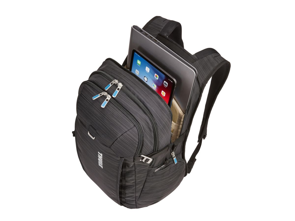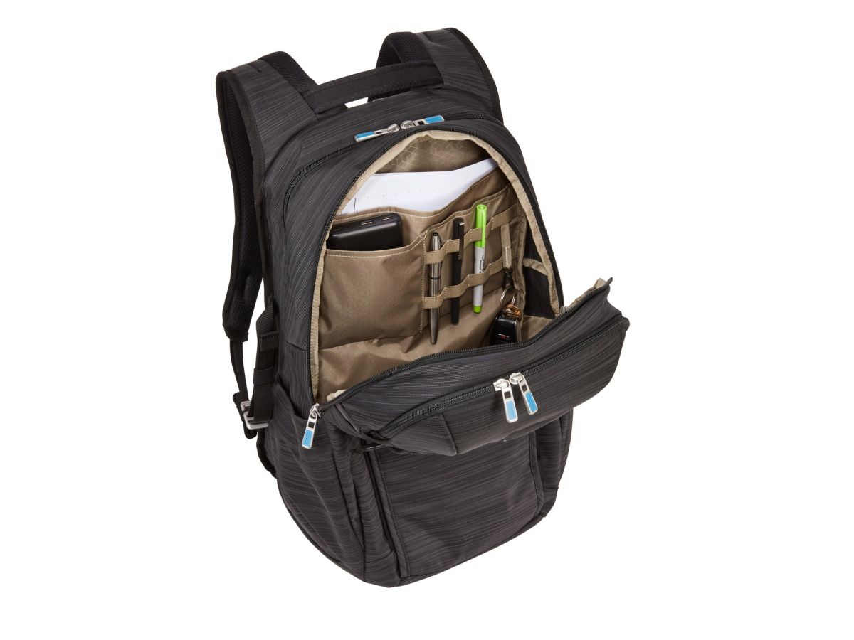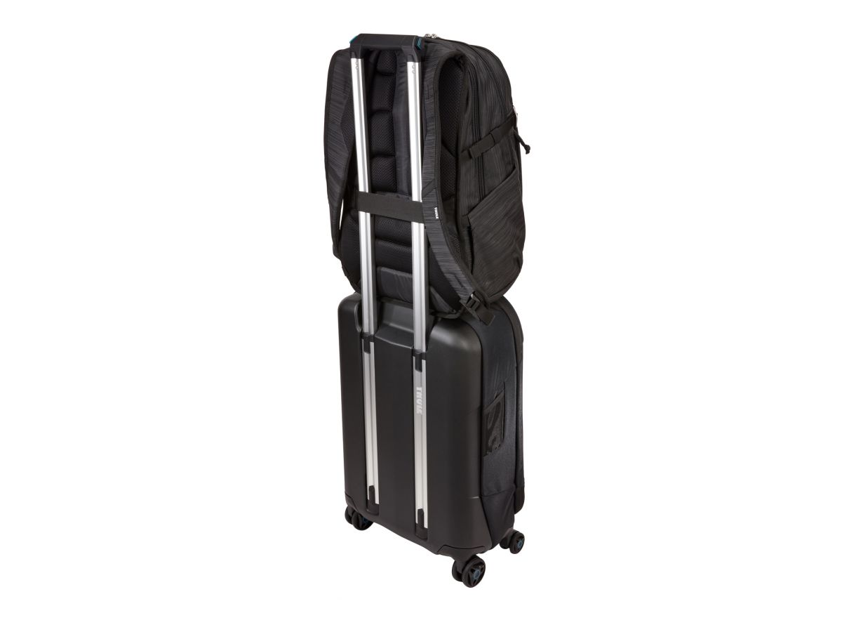 Batoh Thule Construct je vybavený popruhom, vďaka ktorému je možné ho nasadiť na rukoväť inej batožiny a uľahčiť si tak presuny pri cestovaní.