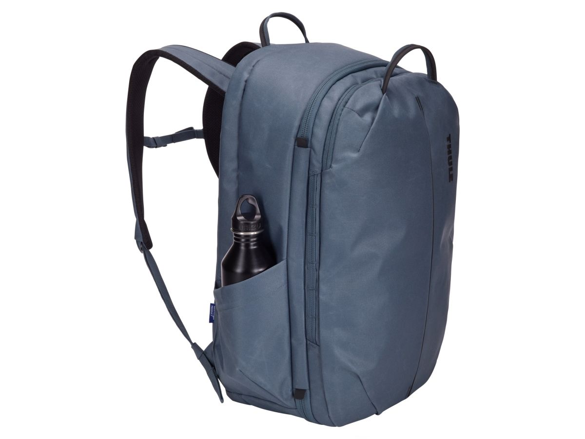 Textílie vonkajšieho plášťa, výstelka aj sieťovina sú vyrobené zo 100% recyklovaného polyesteru z recyklovaných plastových fliaš a batoh Thule Aion má certifikáciu bluesign®. Vonkajšia tkanina je voskovaného plátna 600D, je veľmi odolná a obsahuje vodeodolnú povrchovú úpravu bez toxických PFC, ktorá odpudzuje vlhkosť, špinu a škvrny.