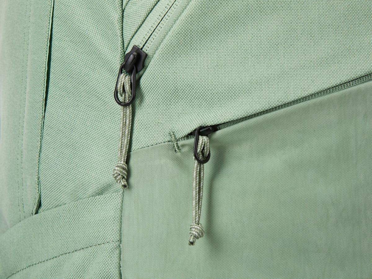 Batoh je vybavený zipsami YKK, ktorých pútka sú farebne ladené s vnútornou výstelkou.