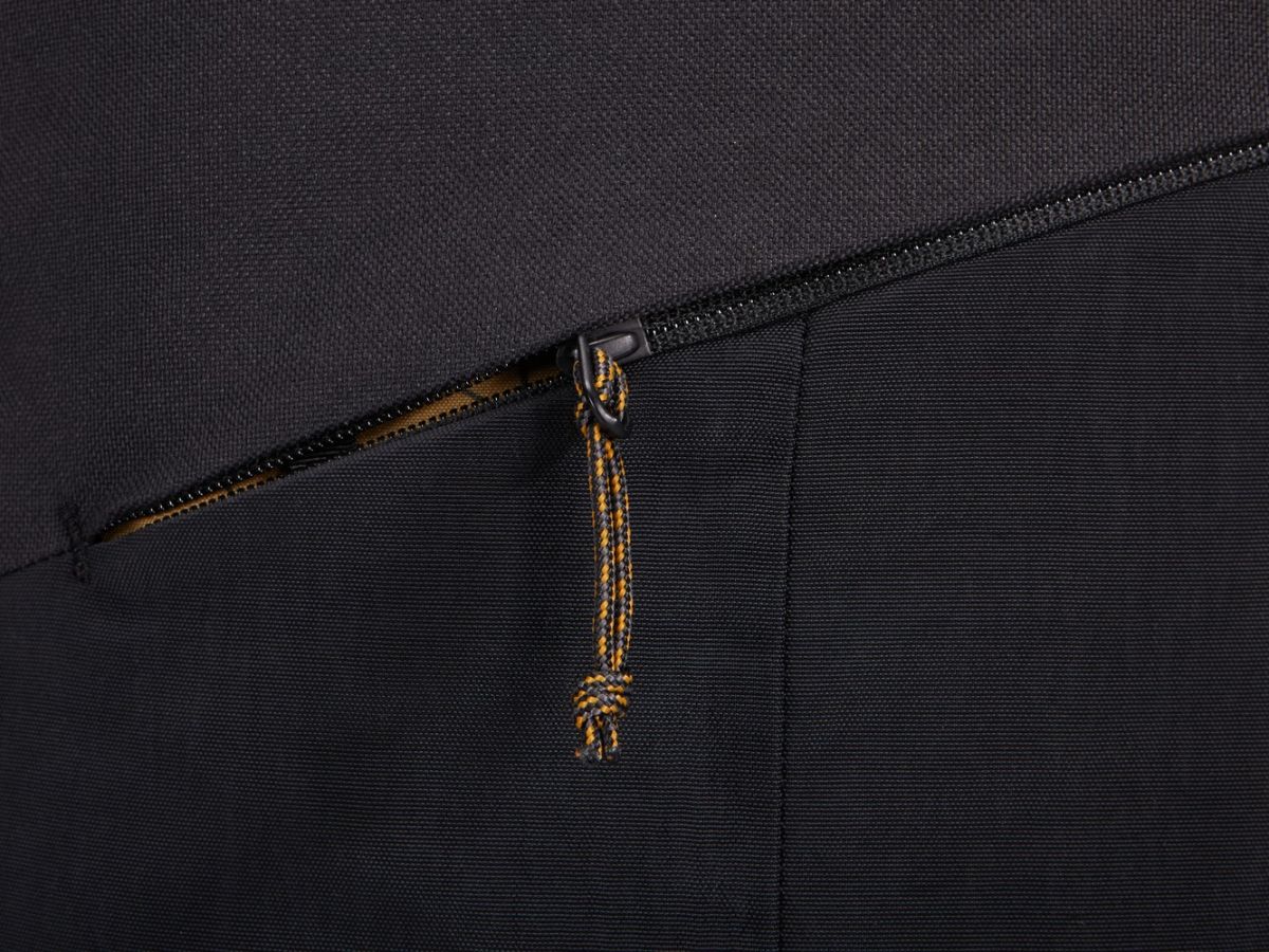 Batoh je vybavený zipsami YKK, ktorých pútka sú farebne ladené s vnútornou výstelkou.