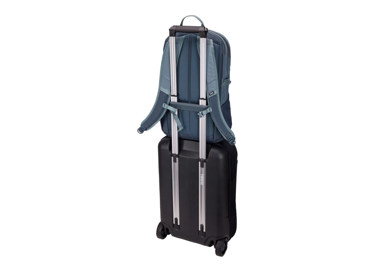 Batoh Thule EnRoute je vybavený popruhom, vďaka ktorému je možné ho nasadiť na rukoväť inej batožiny a uľahčiť si tak presuny pri cestovaní.