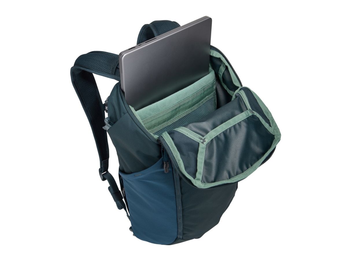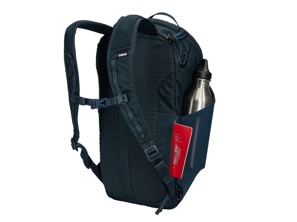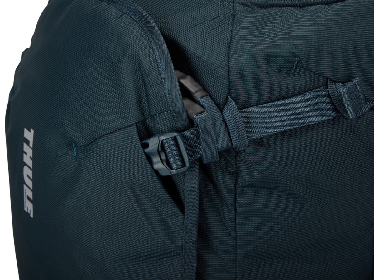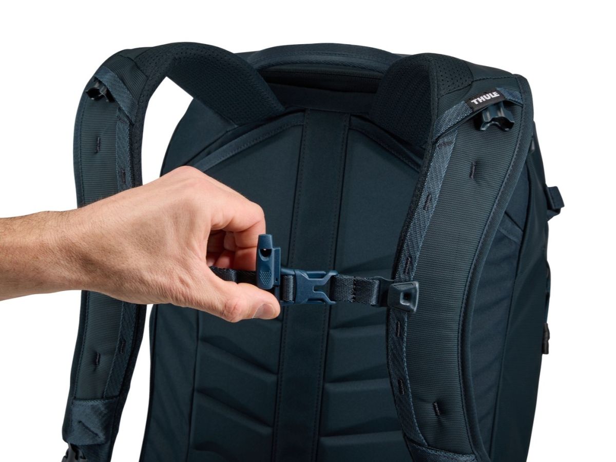 Batoh Thule Landmark je veľmi pohodlný, má špeciálne tvarované ramenné popruhy. Samozrejmosťou je nastaviteľný bedrový pás a hrudný popruh, ktorý má navyše integrovanú píšťalku.
